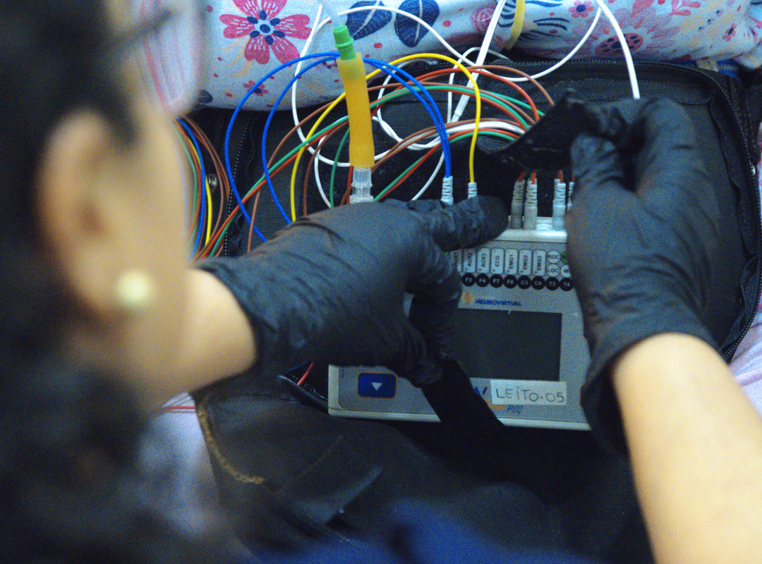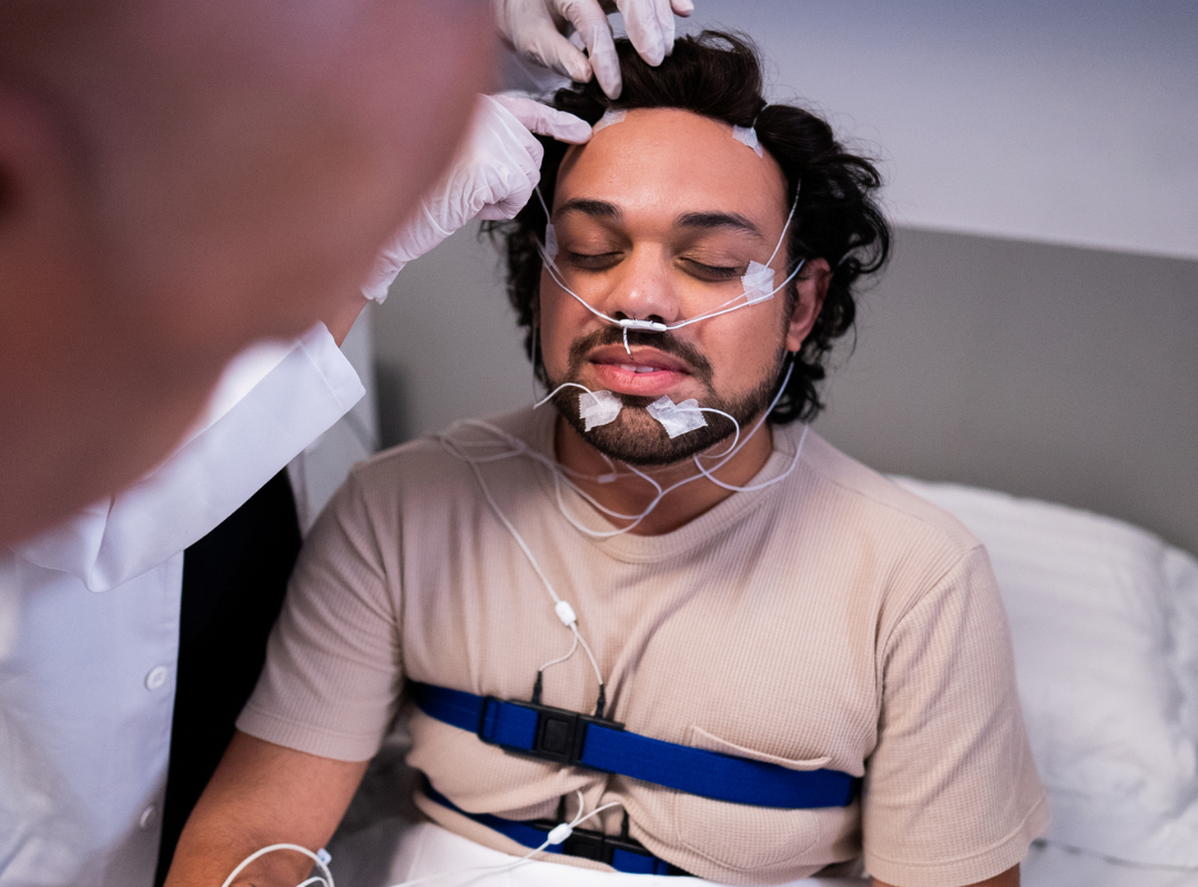 Monitoramento completo do sono para diagnóstico de distúrbios como apneia, insônia e ronco.